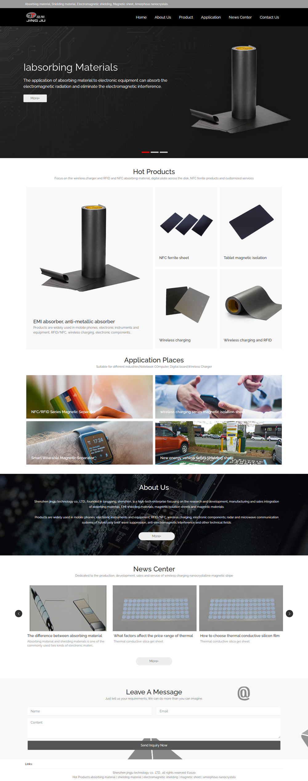 Shenzhen jingju technology co., LTD., founded in longgang, shenzhen, is a high-tech enterprise focusing on the research and development, manufacturing and sales integration of absorbing materials, EMI shielding materials, magnetic isolation sheets and magnetic materials.